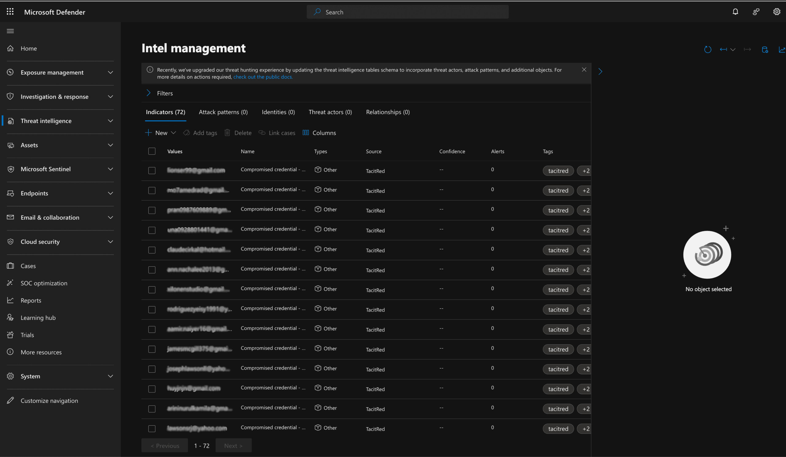 TacitRed Defender Threat Intelligence changes this by surfacing credential exposure early and making it actionable inside Microsoft Sentinel. TacitRed continuously monitors dark-web sources for compromised credentials associated with your organization and automatically feeds validated indicators directly into Microsoft Sentinel.