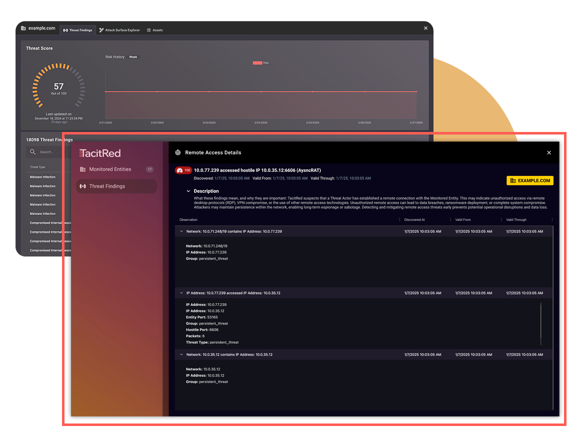 Broaden your visibility into the risk posture of third-party relationships. Enter domains of vendors, suppliers, and partners to uncover their threat landscape, share threat scores, and enable targeted remediation.