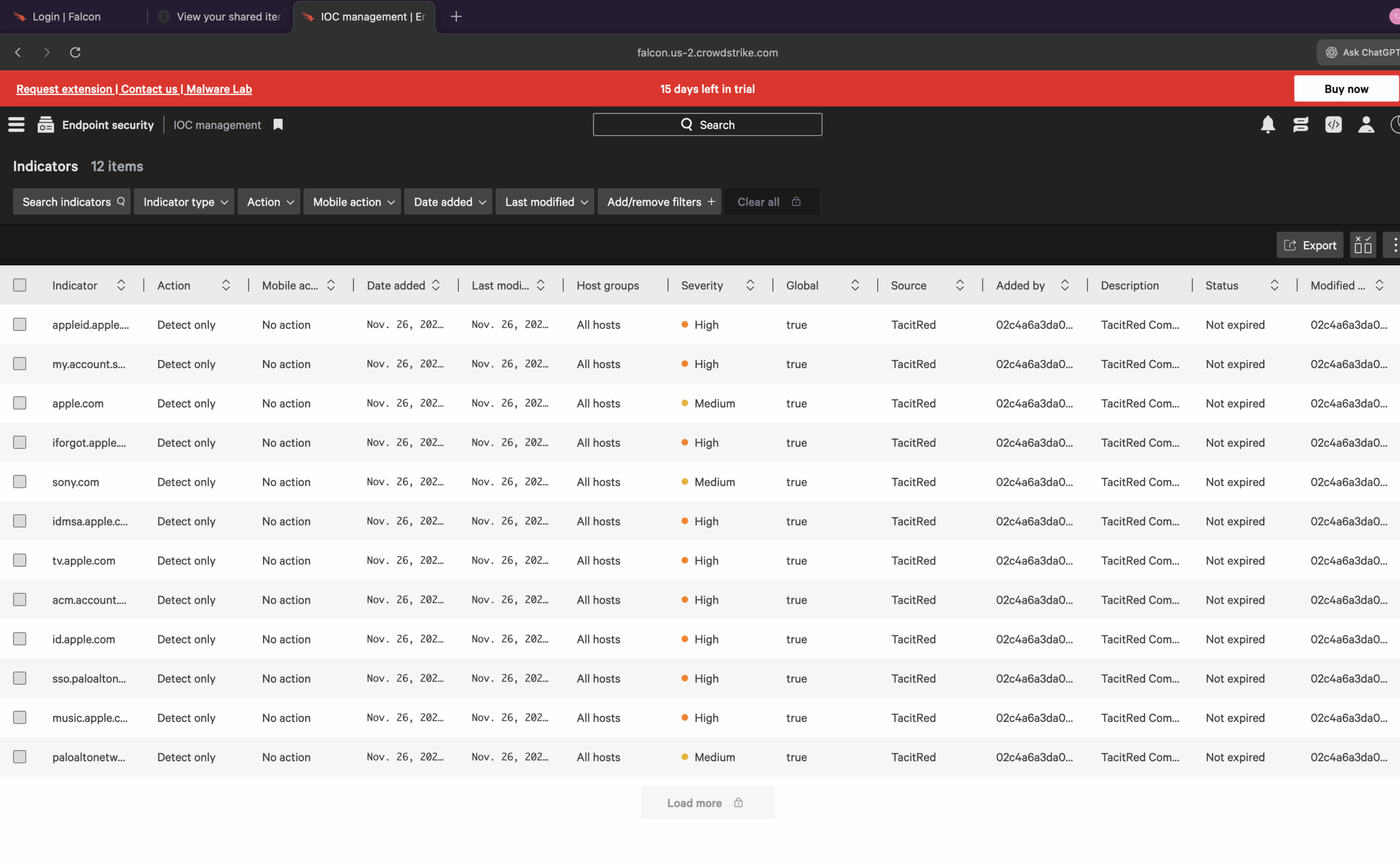 All activity remains auditable—IOC creation and updates are visible both in TacitRed and the Falcon IOC management view, supporting compliance and investigation workflows.